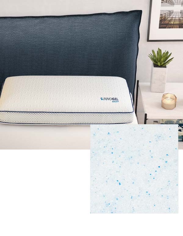 La almohada Innogel gracias a su viscoelástica de alta calidad con un alto porcentaje de particulas de gel, mantiene una posición adecuada de las cervicales y evita la concetración de calor. El gel proporciona una sensación de frescor más duradera que la visco común, mejorando tu descanso y el reposo de tu cuerpo. Hasta un 15% más fresca que la viscoelástica común.