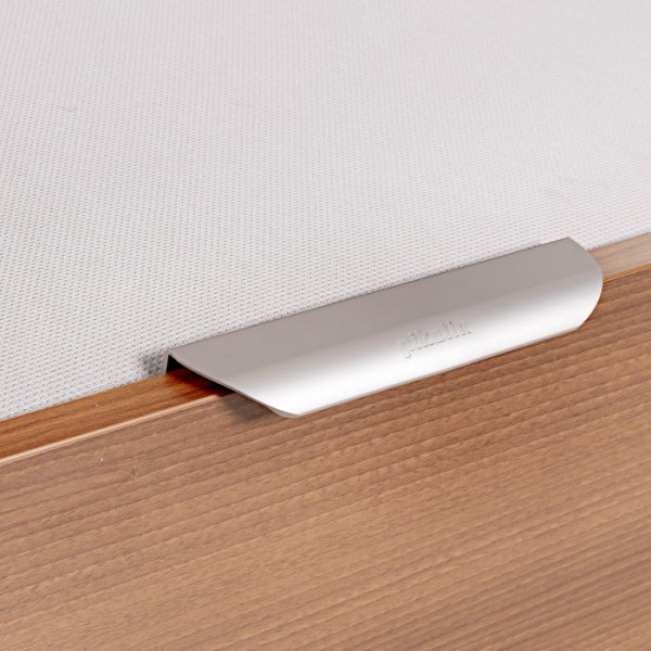 - Dos tiradores de aluminio anodizado con identificación de marca y un arquillo que sujeta el colchón (en medida 90-105 1 tirador)
