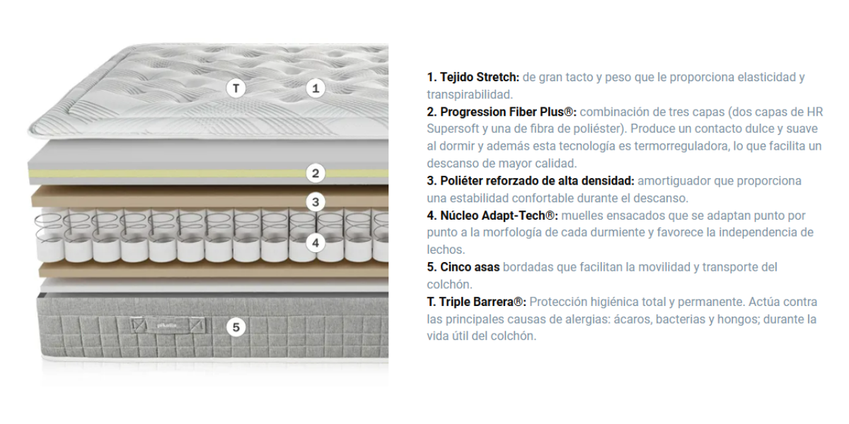 | Acolchado Progression Fiber Plus® | Triple capa (2 capas HR Supersoft + fibra) para un confort extra suave. |