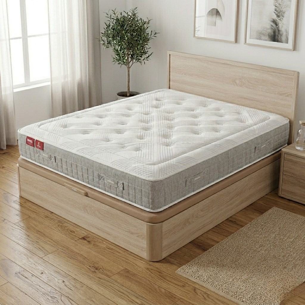 Este pack de Pikolin es la solución definitiva para quienes buscan un descanso de firmeza media con una acogida excepcional. Al combinar el colchón Sleep de muelles ensacados con el canapé Naturbox, obtendrás un soporte personalizado punto por punto y un espacio de almacenamiento extra equivalente a un armario horizontal en tu dormitorio.