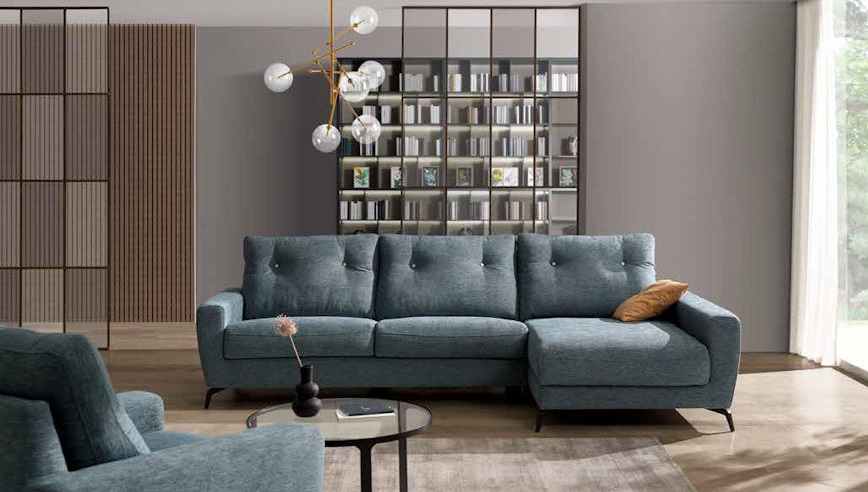 El sofá rinconera Kezy presenta un diseño exclusivo La originalidad de sus respaldos, la elegancia de sus brazos y la sutileza de sus patas altas., lo convierten en un sofá extremadamente estiloso que le dará a tu salón un toque muy especial.